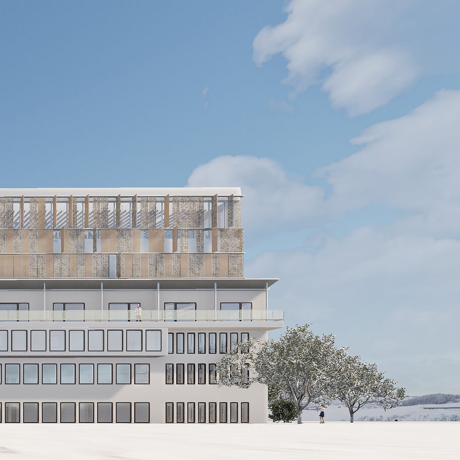 Die klare räumliche Abgrenzung des Gesundheitsbereichs, die auch eine klimatische Trennung impliziert, erlaubt ebenso eine potenzielle Nutzung durch Dritte bzw. Externe. Der Naturraum des bestehenden Therapiegartens im Westen geht mit der Neupositionierung des Gesundheitsbereichs eine atmosphärische Symbiose ein, sodass eine ideale Einbindung speziell in der warmen Jahreszeit gewährleistet ist.