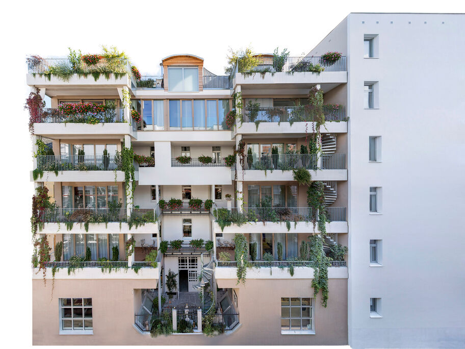 Formal ist der Annex als üppig bepflanzter Hängender Garten konzipiert, dessen konstruktives Gerüst dazu kontrastierend bewusst roh, aber präzise detailliert in Erscheinung tritt.